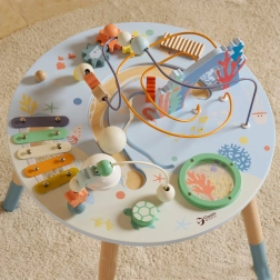 Il tavolino di attività di legno Vita Marina è un'ottima introduzione al mondo delle forme e dei colori. Sicuro per i più piccoli, realizzato in legno di alta qualità e dipinto con colori non tossici. I bambini sono incoraggiati a giocare in piedi, il che favorisce la loro coordinazione e equilibrio. I benefici educativi di questo tavolino sono immensi, che si tratti di migliorare la motricità fine o sviluppare abilità musicali.