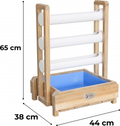 Il gioco d’acqua in legno CLASSIC WORLD è un ottimo complemento per le attività all’aperto. Grazie al semplice principio del flusso d’acqua, i bambini scoprono in modo divertente i fenomeni naturali e sviluppano le proprie abilità. La struttura robusta e le finiture sicure e atossiche garantiscono lunga durata e uso in totale sicurezza.