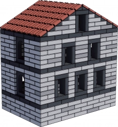 Il set include travi triangolari, finestre ad arco e 32 elementi per il tetto – il complemento ideale per completare ogni costruzione.