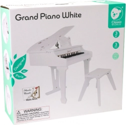 Il pianoforte bianco per bambini CLASSIC WORLD offre un’esperienza autentica di gioco come su un vero strumento, in una forma sicura e divertente. Grazie alla struttura in legno, alla panca stabile e al leggio, i piccoli musicisti godranno di una seduta confortevole e acquisiranno buone abitudini di esecuzione. Nella confezione è incluso un libro illustrato con spartiti per facilitare le prime melodie.