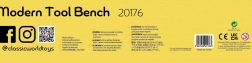- Banco con fori per viti, martelletto, chiave piatta, cacciavite, seghetto, pinze, 2 misuratori (incluso calibro), 5 viti, 5 pioli, 5 ingranaggi, 3 dadi, morsa