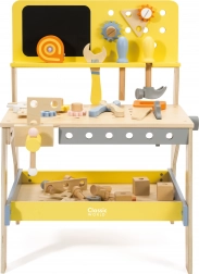 Scopri il mondo creativo delle riparazioni e costruzioni con il banco da lavoro in legno CLASSIC WORLD. Questo set di qualità include 27 elementi, tra utensili e accessori, e offre anche una lavagna a gesso per disegnare i progetti. Grazie alla robusta struttura in legno senza spigoli vivi è sicuro per i bambini e favorisce motricità fine, creatività e fantasia.
