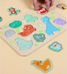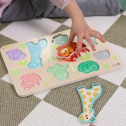 Scopri il divertente puzzle a incastro in legno con animaletti di CLASSIC WORLD, che aiuta i bambini dai 18 mesi a riconoscere forme e colori. I pezzi colorati come la giraffa o la volpe si inseriscono nelle aperture corrispondenti sulla tavola, favorendo in modo naturale lo sviluppo della motricità fine, della coordinazione occhio–mano e del pensiero logico.