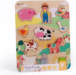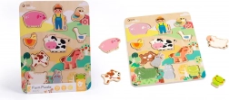 Scoprite la magia della fattoria con il puzzle a incastro in legno CLASSIC WORLD di alta qualità. Ogni pezzo, illustrato con un simpatico animaletto o il contadino, si incastra perfettamente nella propria sagoma, favorendo il pensiero logico e la pazienza. Un gioco ideale per il primo approccio a forme e nomi degli animali.