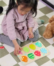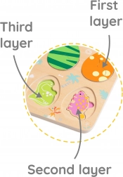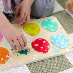 Il giocattolo è ideale per sviluppare la coordinazione mano–occhio, la pazienza e il pensiero creativo. I pezzi in legno con bordi lisci si adattano perfettamente alla mano del bambino e favoriscono una presa corretta.
