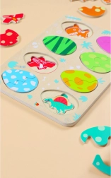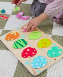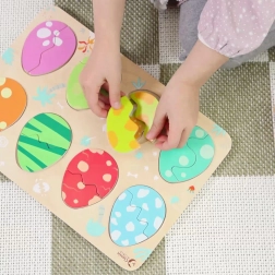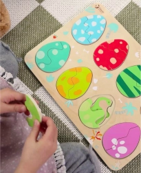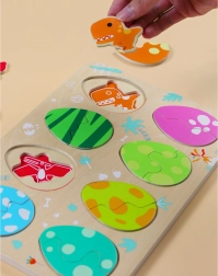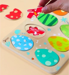 Scoprite il divertente puzzle in legno di Classic World con il tema delle uova di dinosauro. La struttura a tre strati favorisce l’apprendimento di colori e forme, il ragionamento logico e la motricità fine. I bambini abbinano le uova ai dinosauri nascosti e, nello strato inferiore, scoprono semplici immagini che aiutano a effettuare gli abbinamenti corretti.