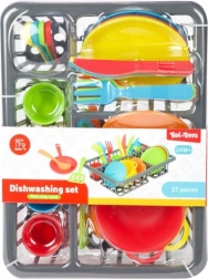Allegra set da cucina per piccoli chef con 27 pezzi – pentola, padella, piatti, tazze, posate e altri accessori. Stimola la creatività, la motricità fine e le abilità sociali durante il gioco di cucina e servizio. La pratica confezione in blister mantiene tutto ordinato e a portata di mano. Adatto ai bambini da 2 anni.