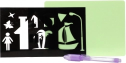 Questo set include una lavagnetta e una penna con inchiostro invisibile, ideale per scrivere lettere segrete. L’inchiostro è invisibile in condizioni di luce normale, ma nell’oscurità inizia a brillare, garantendo esperienze uniche e sorprendenti per i bambini. Nella confezione sono inclusi anche dei modelli per un divertimento e un’ispirazione ancora maggiori.