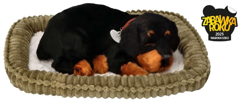Cerchi un compagno silenzioso per la cameretta o un regalo che faccia piacere e al tempo stesso rilassi? Il cucciolo di rottweiler respirante Perfect Petzzz imita il respiro reale, si solleva dolcemente e sembra un vero cagnolino addormentato. È perfetto per rilassarsi prima di dormire e come decorazione per la stanza.