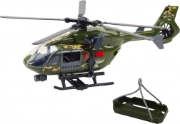 Realistico elicottero militare per bambini che offre divertimento d'azione con rotori rotanti, effetti luminosi e sonori e gancio di salvataggio con barella. Materiali resistenti, batterie incluse e facile utilizzo lo rendono un regalo perfetto per piccoli fan dell'esercito e delle missioni di soccorso.