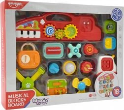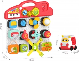 Il pannello 88 composto da vari elementi interattivi che si possono attaccare e staccare liberamente, simili a blocchi. Incluso nella confezione c'88 anche una macchinina a forma di cubo a cui si possono attaccare elementi della tabella. Sui blocchi da attaccare ci sono vari tipi di leve, bottoni, pulsanti, salviette rimovibili, un lucchetto con chiave e finestre apribili. Questi elementi sviluppano nel bambino abilit75 motorie, cognitive e sensoriali, e allenano anche la coordinazione mano-occhio.