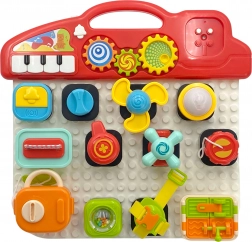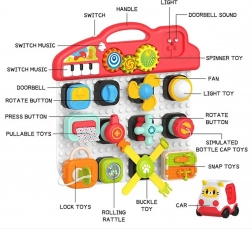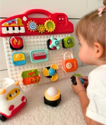 Il pannello colorato include varie leve, pulsanti e bottoni, che sviluppano abilit75 motorie.