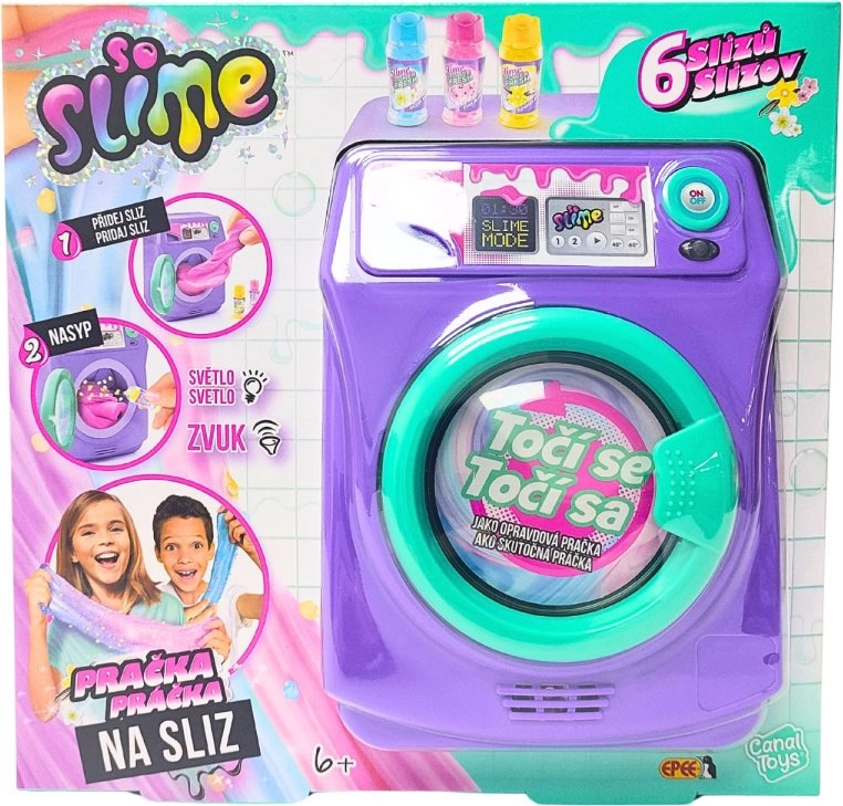 Scopri il divertimento di creare slime con il giocattolo SO SLIME lavatrice profumata nei colori viola-turchese. I bambini dai 6 anni apprezzeranno effetti luminosi e sonori, il cestello rotante e lo sportello trasparente per osservare la miscelazione. Nella confezione trovi 6 bustine di slime, un cestino, una bottiglia e 3 perline profumate per uno slime colorato e magicamente profumato. Alimentazione 3× AA (non incluse).