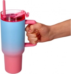 Elegante grande thermos con cannuccia in moderno gradiente blu‑rosa mantiene le bevande più a lungo alla temperatura ideale. Ha un coperchio pratico, una maniglia comoda e una capacità di 1200 ml per l’idratazione di tutta la giornata. Ideale per viaggi, lavoro e sport – resistente, comodo e facile da pulire.