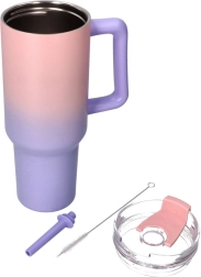 Scopri il comfort di una tazza termica ad alta capacità che unisce look moderno e dettagli pratici. Il gradiente pastello dal rosa al viola conquista al primo sguardo, mentre il coperchio trasparente con foro per la cannuccia e il manico comodo facilitano l’uso quotidiano a casa e in viaggio.