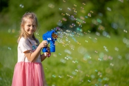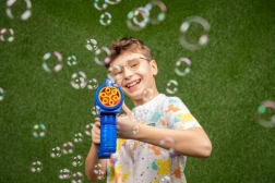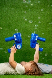 La pistola per bolle Fru Blu è la scelta ideale per ogni pomeriggio dei bambini in giardino, al parco o alle feste. Grazie alle multiple bocchette genera un denso flusso di bolle, che fluttuano dolcemente nell’aria e durano a lungo. L’impugnatura ergonomica e il controllo semplice assicurano divertimento anche ai più piccoli.