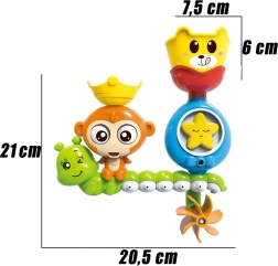 Versa l’acqua nel cappellino della scimmietta e osserva come gli occhi iniziano a girare, la boccuccia si apre e l’acqua crea un allegro getto nella vasca.