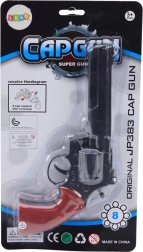 Scopri la classica rivoltella a capsule che entusiasmerà piccoli e grandi fan dei western. Grazie al tamburo girevole ha un aspetto credibile e può essere usata con o senza capsule – come giocattolo, scenografia o parte del costume. Il corpo nero con impugnatura rossa offre un aspetto autentico e una presa confortevole.