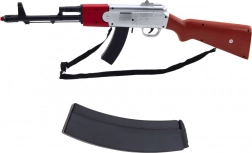 Il giocattolo è dotato di un caricatore estraibile che aumenta il realismo e consente di coinvolgere ancora di più la fantasia durante il gioco. Il calcio in legno e i dettagli metallici conferiscono un aspetto autentico. La tracolla inclusa permette un trasporto comodo, ideale per giochi a tema e rappresentazioni.