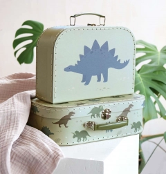 Un adorabile set di due valigette in cartone con motivo di dinosauri è ideale per la cameretta dei bambini e per i viaggi. Offre 2 dimensioni, cartone resistente con cuciture in poliestere, manico e fermaglio in metallo per una chiusura sicura e un motivo con dinosauri per rendere piacevole il riordino di giocattoli e materiali creativi.