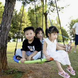 Il montaggio dell'altalena è facile e permette due varianti di sospensione - su due ganci per il classico dondolamento o su uno per la rotazione a 360 gradi.