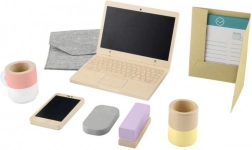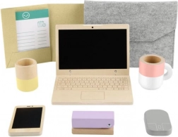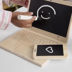 Lascia che i bambini scoprano il mondo degli adulti a modo loro. Questo set in legno “lavoro da casa”, ben studiato, offre accessori autentici in un design sicuro e piacevole. Il “laptop” e il “cellulare” con lavagna invitano a scrivere, disegnare e inventare storie senza fine, senza sprecare carta. Il legno di qualità certificato FSC è piacevole al tatto e resiste anche alla fantasia quotidiana dei bambini.