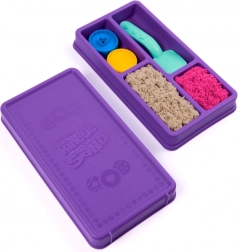 La sabbia è realizzata con materiale naturale, mantiene la forma e si pulisce facilmente. Non si secca, quindi puoi tornare a creare ogni volta che vuoi. La custodia viola richiudibile tiene sabbia e strumenti in ordine: ideale in viaggio e nella cameretta.