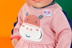 Adorabili vestitini della giungla per bambole BABY Born da 36 cm. Questi abiti dai colori delicati con l’immagine di un ippopotamo sono un ottimo accessorio per arricchire il gioco creativo. Contenuto: