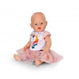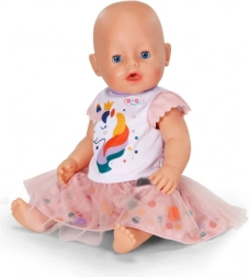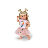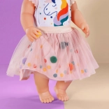 Un grazioso set a due pezzi per bambole da 43 cm porta nel gioco tanta fantasia e colore. La maglietta bianca con stampa di unicorno e la gonna in tulle rosa con pompon colorati creano un outfit incantevole per il gioco quotidiano e i momenti speciali. Grazie ai materiali morbidi, alla vita elastica e al taglio studiato, il completino è facile da indossare ed è ideale per un gioco creativo di lunga durata.