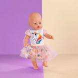 Regala alla tua bambola uno stile magico con l’esclusivo vestitino tutu con motivo unicorno. Il set include una maglietta bianca a maniche corte con stampa giocosa di unicorno, abbinata a una gonna tutu in tulle rosa con veri pompon colorati sotto lo strato superiore. La combinazione di materiali delicati e vita elastica semplifica la vestizione ed è comoda durante il gioco.