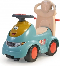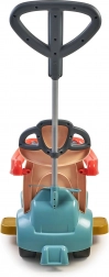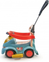 Carrello spingibile, cavalcabile, dondolo, veicolo con guida del genitore e pratico vano sotto la seduta. Si adatta all’età e alle abilità del bambino.