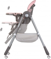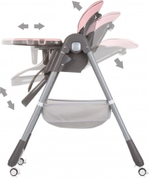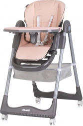 Seggiolone pratico e confortevole per bambini fino a 15 kg, con dotazione superiore per pasti sicuri e tranquilli. Offre 4 posizioni dello schienale, 7 altezze della seduta, poggiapiedi regolabile e morbida pelle ECO per una facile manutenzione. La sicurezza è garantita da cinture a 5 punti e da una struttura stabile con ruote per un facile spostamento. Inclusi doppio vassoio, archetto con giocattoli e cestello portaoggetti.