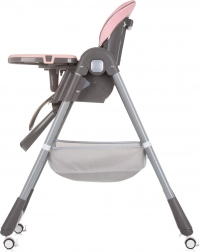 Il pratico doppio vassoio con parte superiore removibile facilita il servizio e la pulizia. La sicurezza è garantita da cinture a 5 punti imbottite e dalla barra a T sul vassoio di base. Grazie alle 4 ruote il seggiolone si sposta facilmente in casa, mentre il cestello portaoggetti accoglie giochi e accessori per l’alimentazione. La chiusura compatta fa risparmiare spazio in casa e in viaggio.