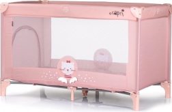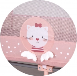 Pratico lettino da viaggio CHIPOLINO Capri in delicata tonalità rosa con motivo gattino, ideale a casa e in viaggio. Offre chiusura rapida e semplice, design sicuro con coperture angolari in plastica e ingresso laterale con zip per un accesso comodo. Inclusi morbido materassino e borsa per il trasporto per un trasporto pulito e facile.