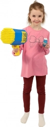 Questa pistola per bolle per bambini trasforma ogni pomeriggio in uno spettacolo arcobaleno. La dimensione compatta di 22 cm, l’impugnatura ergonomica e la struttura in plastica leggera garantiscono una presa comoda anche per i più piccoli. La testina multiugello crea una cascata di bolle scintillanti che divertirà grandi e piccini.