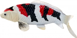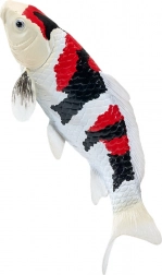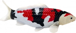 La tipica combinazione di bianco, nero e rosso riproduce fedelmente le vere koi Showa e valorizza i dettagli di squame e pinne.