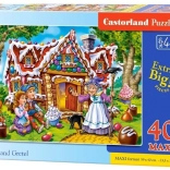 Questo puzzle in grande formato con il tema della fiaba Hansel and Gretel è ideale per bambini dai circa 4 anni. Grazie ai pezzi più grandi e robusti, è facile da maneggiare e l’immagine prende vita rapidamente con la sua colorazione vivace ed estetica.