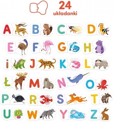Inizia l’avventura dell’apprendimento! Questo set educativo include 24 grandi puzzle a due pezzi che presentano adorabili animaletti per ogni lettera dell’alfabeto (ogni tessera è etichettata!) e una guida piena di idee per giochi intelligenti. Comporre i puzzle è un modo eccellente per imparare le lettere e iniziare il percorso di lettura e scrittura.