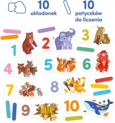 Il gioco con i puzzle favorisce lo sviluppo del vocabolario, la fantasia e la percezione visiva. I bambini possono nominare gli animali, inventare storie e cercare i numeri nel loro ambiente. Il set è un ottimo punto di partenza per imparare a contare fino a 10 e per i primi tentativi di scrittura delle cifre.