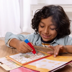 I libri da colorare ad acqua profumati Water WOW! offrono ai bambini un divertimento creativo senza pennarelli né macchie. Una volta inumidite, le immagini a tema frutta si colorano all’istante e, asciugandosi, svaniscono, così possono essere usate più e più volte. Il pratico blocco a spirale con la penna ad acqua inclusa è il compagno ideale per i viaggi.