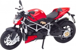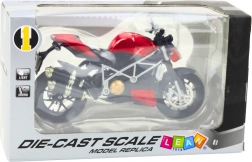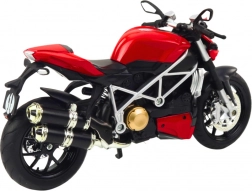 Questa moto sportiva rossa in scala 1:12 colpisce per i dettagli precisi e la robusta fattura. Grazie al corpo in metallo e agli elementi in plastica ha un aspetto realistico e risalta su scaffale, scrivania o in vetrina. Le luci e i suoni integrati alimentati da batterie AG13 aumentano la sensazione di guida reale.