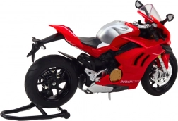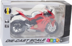 Modello realistico di moto sportiva in metallo in scala 1:12 che farà felici collezionisti e bambini. Offre dettagli precisi, struttura in metallo, effetti luminosi e sonori e elementi funzionali come sterzo girevole, sospensioni a molla e ruote liberamente rotanti. Il design da corsa rosso conferisce al modello un aspetto autentico.