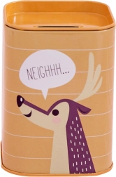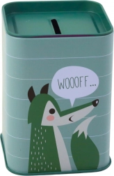 Salvadanio per bambini in metallo con animaletti 11 × 8 cm