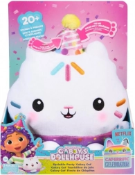 Entra nel mondo della fantasia con il gattino Cakey della Casa delle Bambole di Gabby. Il peluche interattivo, con un scintillante outfit da festa, reagisce ai movimenti e al tocco: capovolgilo per la modalità pazzerella, scuotilo per la modalità party e premi il pulsante sul cappellino per attivare voce e suoni. La morbidezza e l’espressione simpatica lo rendono un compagno adorabile per ogni giorno.
