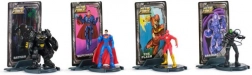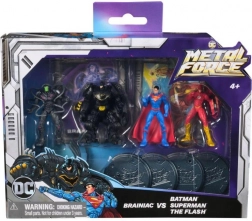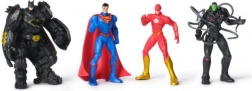 Brainiac, Batman, Superman e Flash in un'altezza pratica di circa 5 cm, con lavorazione dettagliata ed effetto metallico – pronti per l'esposizione e per il gioco.