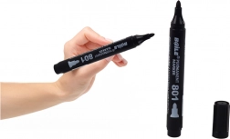 Pennarello permanente universale con inchiostro nero intenso e formula impermeabile ad asciugatura rapida. Grazie alla punta smussata da 2,5–4,5 mm realizzi facilmente linee sottili e spesse. Ideale per carta, cartone, plastica, metallo e vetro – scelta perfetta per ufficio, officina e casa.