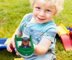 Il set AquaPlay mega-ponte porta nella tua famiglia l’atmosfera delle vacanze. Nel capiente porto con chiusa, le barche possono essere sollevate con una pompa manuale, permettendo loro di passare facilmente attraverso la chiusa. Le automobili raggiungono la rampa del traghetto attraversando il ponte ribaltabile. Dopo l’ormeggio sicuro con due ganci, il veicolo può salire a bordo del traghetto e il viaggio prosegue lungo ampi canali. Ma attenzione: il largo ponte deve essere aperto prima che la nave possa continuare la navigazione. I piccoli esploratori decidono se proseguire nei canali o tornare sul ponte. Il sistema di canali d’acqua assicura un divertimento duraturo e coinvolgente. I set AquaPlay garantiscono un modo creativo e divertente di imparare come l’acqua si muove e sale! Le guarnizioni progettate con cura sono facili da montare e sigillano perfettamente le piste. Ogni confezione include istruzioni di montaggio chiare.