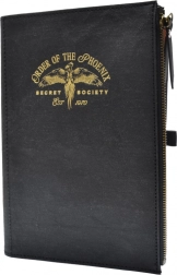 Copertina nera con emblema dorato “Order of the Phoenix Secret Society” e discreto brand Harry Potter per un aspetto ricercato.
