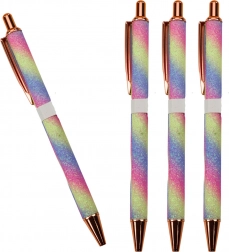 La penna scintillante in metallo è dotata di una punta precisa di diametro 1,0 mm, che garantisce una scrittura fluida e uniforme. La ricarica di alta qualità con inchiostro blu offre scritture chiare e durature, mentre il meccanismo a click permette un rapido e comodo ritiro della ricarica dopo l'uso.