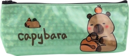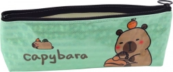 Elegante astuccio scolastico con motivo capibara in una splendida tonalità verde metallizzata, ideale per ogni amante degli animali. Questo astuccio si distingue non solo per il design moderno, ma anche per la sua praticità.